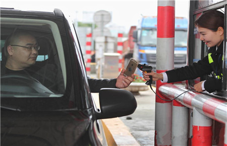“移動支付也給我們工作帶來很多方便,省了核對現(xiàn)金數(shù)額、辨別錢幣真?zhèn)巍⒄伊愕墓ぷ髁浚僮鲿r間縮短,車輛通行速度自然也快了很多。”當(dāng)班收費(fèi)班長馬德偵介紹,而且付費(fèi)掃碼器的有效距離能夠達(dá)到1.5米,司乘人員坐在車內(nèi)就能輕松完成掃碼支付,既方便又快捷。“對于較大的貨車,我們也可以使用手動掃描儀進(jìn)行操作。”