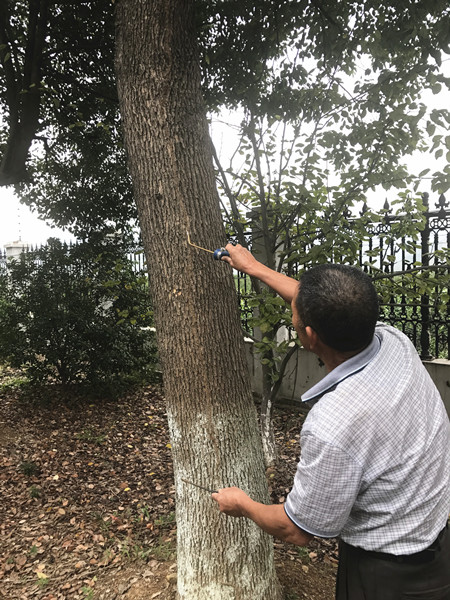 上圖為技術(shù)人員在防治白蟻受災(zāi)處 為全面消除隱患,該所立即組織人員對員工宿舍、綠化帶、辦公樓逐一進(jìn)行地毯式排查,最終發(fā)現(xiàn)三處地方受災(zāi)最為嚴(yán)重,同時(shí)在員工宿舍旁綠化帶處找到白蟻窩。該所負(fù)責(zé)人及時(shí)聯(lián)系建設(shè)局房管處白蟻防疫站技術(shù)人員,對樹木、門框等進(jìn)行防治消殺和用白粉涂擦等方式排除隱患,通過防治消殺和白粉涂擦等方式,有效確保了所內(nèi)環(huán)境的生態(tài)資源健康和安全。