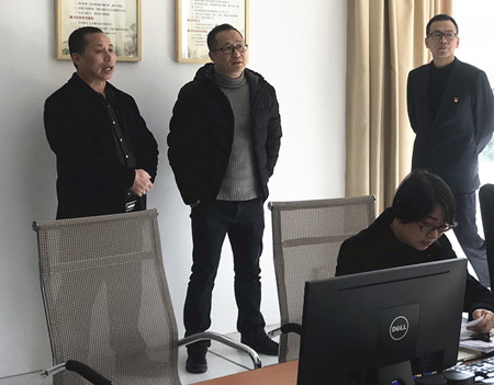 圖為集團副總經理章海峰一行在監控室檢查監控設備
