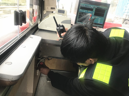 圖為工作人員自查崗亭報警器 此外,工作人員對收費區域內的消防、交通、崗亭設施設備,以及票證、通行費等安全情況進行了一次自查,確保安全用電,做好消防和防盜措施,并對當班收費員進行現場稽查,檢查大家在當班期間的崗亭環境是否衛生,臺面是否整齊,著裝是否統一,有無佩戴上崗證,儀表舉止是否規范,文明用語是否親切,以及抽屜大額現金有沒按規定放入保險箱等。大家的合力檢查和相互配合,為春運安全暢通、防寒防凍工作提供了強有力的保障。 陳瑩