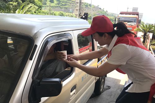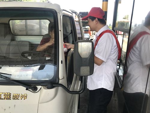 “大中午的,天氣熱,剛才還暈乎乎的想睡覺,現(xiàn)在喝了一杯冰冰涼的綠豆湯,整個人都舒暢了。”一位貨車師傅開心地說。 “沒想到,你們收費站還有這個服務(wù),這次我要出趟遠(yuǎn)門,說不定路上還真能用的上,謝謝呀!”一位接過礦泉水和風(fēng)油精的老師傅連聲道謝。 天氣雖炎熱,服務(wù)不“打烊”。 在活動中,志愿者們不顧自身大汗淋漓,仍身披橫幅,頭戴小紅帽,面帶微笑向途經(jīng)收費所的司機們遞上一杯杯綠豆湯、一瓶瓶礦泉水。同時,大家還不忘宣傳行車安全注意事項,提醒司機朋友在高溫酷暑時節(jié)多注意行車安全。