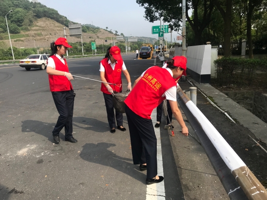 圖為志愿活動現場 “這邊有可樂瓶、邊溝上有塑料罐。” 另一邊由吳偉麗、周戰帶隊的一行女同志,對收費所周邊互通匝道、及沿線綠化帶等區域進行清撿。不好夾就用手撿、拾不起來就用手摳。大家發揚不怕苦、不怕累、不怕臟的精神,一路走走停停,將收費區域、綠化帶的塑料袋、紙巾、煙蒂等垃圾及邊溝的淤泥都被清理得干干凈凈,使得周邊區域環境煥然一新。 此次活動,大家不畏艱苦,冒著炎炎烈日,對路面垃圾清理、倒樹處理、物資搬運等工作積極奮戰。經過一個上午的通力合作,所內及周邊環境大為改觀。 臨海南收費所黨員們真正做到“平常時候看得出,關鍵時刻站得出”,以共產黨員的模范行動,挺身在前,將災后恢復工作各項措施落到實處。 陳瑩