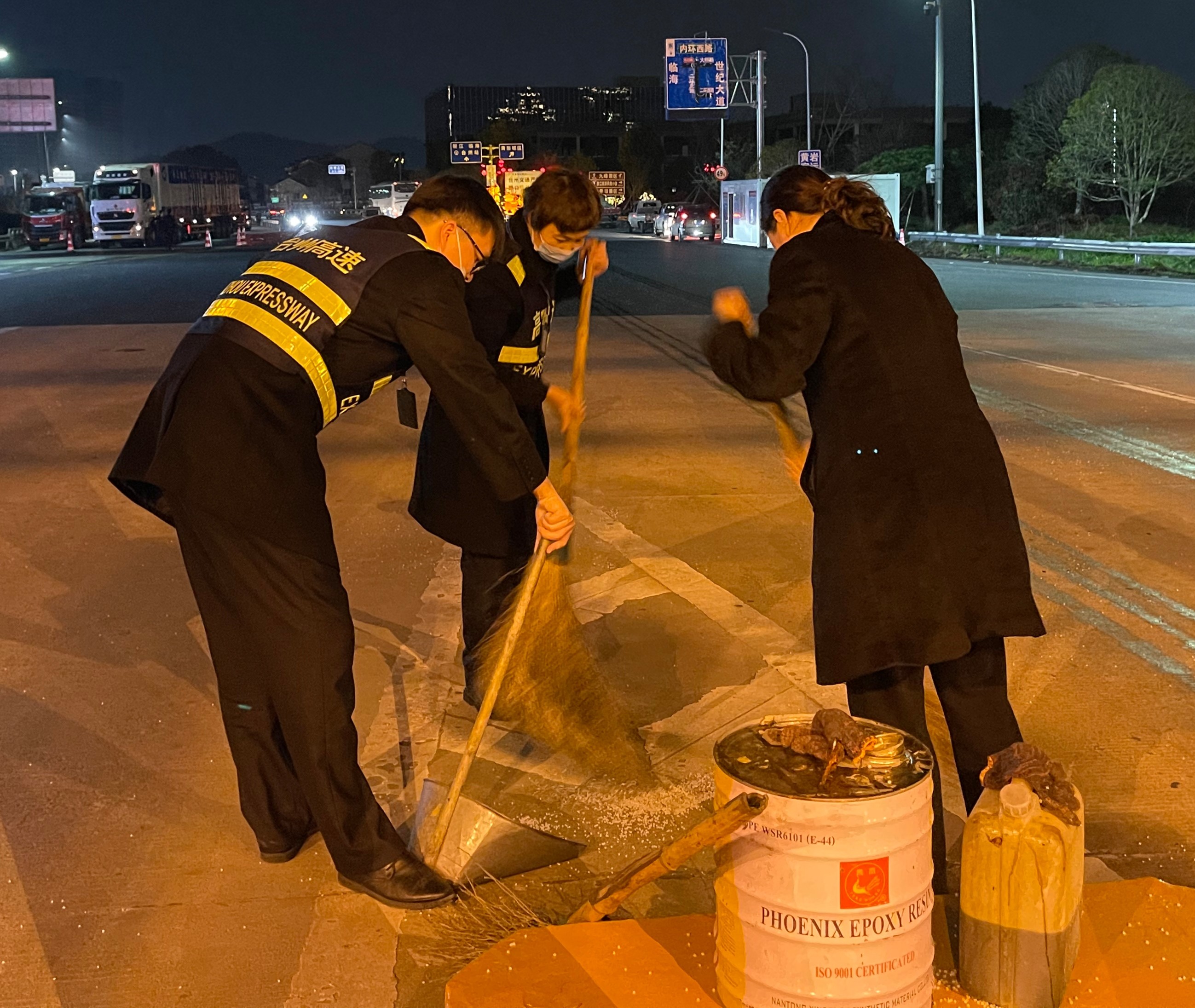 (圖為工作人員在清掃) 一時之間,車道路面上落滿大量的塑料顆粒,考慮到夜色已深,ETC車道上行駛的車輛速度大多很快,萬一司機(jī)沒有及時發(fā)現(xiàn)前方道路上的灑落物,極易造成輪胎打滑,嚴(yán)重影響行車安全。情況緊急,為了后續(xù)通行車輛的安全,收費班長立刻關(guān)閉了該ETC車道,并放置警示標(biāo)志,然后將這一情況上報給監(jiān)控中心和收費所值班人員。不等清潔人員到來,收費員羅時杰從車道的工具房拿出掃帚和簸箕,主動開始清掃工作。隨后其他不坐崗的收費員也投入到了清掃工作中,這支臨時清掃小隊在沒有任何人的領(lǐng)導(dǎo)下自發(fā)地組織起來。這時,從高速上完成機(jī)電養(yǎng)護(hù)工作的機(jī)電班工作人員正巧路過,他們看到這一幕立刻將車停靠在一邊,加入清掃隊伍。盡管散落的塑料顆粒數(shù)量較多,但在大家的共同努力下,車道終于被清理干凈,恢復(fù)了正常通車。 春日的夜晚微風(fēng)拂過,已有春的暖意,而更暖的是這一幕在春夜里的一個個身影。大家因為一件小事而聚在一起,然而安全無小事。所有人心系安全,為所有過往車輛保暢保安全,為臺州高速貢獻(xiàn)自己的一份力。 崔翔浩 吳侃霓