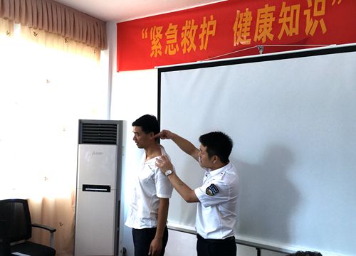 圖為授課現(xiàn)場(chǎng) 授課老師向水平為大家講述了現(xiàn)場(chǎng)心肺復(fù)蘇術(shù):判斷呼吸→高聲呼救→擺體位→打開氣道→人工呼吸及如何進(jìn)行按壓與吹氣,隨后他授以簡(jiǎn)單的醫(yī)學(xué)理論知識(shí),對(duì)高血壓、心臟病、糖尿病等疾病的預(yù)防作了普及。當(dāng)談及上班族普遍面臨的不樂觀的嚴(yán)峻現(xiàn)實(shí):受肩周炎、頸椎病、腰椎間盤突出等職業(yè)病困擾時(shí),向老師以現(xiàn)場(chǎng)演示的方式教大家?guī)渍袀鹘y(tǒng)的中醫(yī)方法——穴位按摩,鼓勵(lì)大家自己動(dòng)手,通過(guò)按摩這種最直接的方法,緩解不適。