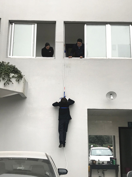 圖為高處逃生演練現(xiàn)場 理論培訓(xùn)結(jié)束后,溫嶺西收費所隨即開展實地逃生演練,讓員工學(xué)習(xí)使用逃生繩從高處逃生的技能。在蔡教官的指導(dǎo)下,一名收費員大膽地自我推薦,主動嘗試此自救方法。 一切準(zhǔn)備就緒,該收費員迅速爬上窗戶,利用逃生繩小心地沿著墻壁下滑,并順利落地。教官最后根據(jù)演練情況作點評。 此項技能有助于在火災(zāi)時多開辟一條逃生通道,減少人員傷亡。 通過此次全面的培訓(xùn)演練,溫嶺西收費所將全力共抓消防安全工作,排除各類隱患。 鄭霞霞