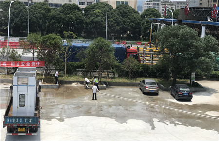 2018年6月13日,正值烈日當空,火辣辣太陽直射地面,照的人睜不開眼睛。遠處,所長帶領副所長和所務駕駛員以及當班班長,拉起了一條消防水帶,所長拿著掃把,大家很是疑惑,這都是做什么呢? 原來,是為了沖洗所內的一塊剛剛澆好的水泥地。這片水泥地在澆好之前,曾是一片雜草叢生、林木灌叢的空地,下雨后滿是泥濘,盡管里面放了一張石桌,但是不見有人去過。后來所長為了豐富員工們的業余活動,拓寬所里原有的場地,可以改造成羽毛球場、籃球場、網球場,打算把這片空地澆成一片水泥地,供大家使用。