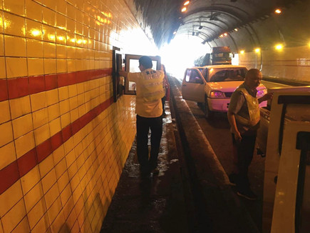 圖為隧道清洗現場 因隧道內空間封閉,長時間來往車輛的尾氣、揚塵、機油混合一起,易沉積在隧道內壁形成污垢,影響隧道內照明效果,存在安全隱患。黃土嶺管理所組織養護人員對隧道側壁及路面進行全面清洗,重點對洞壁墻裙、標志標線等進行清潔,并利用半幅路封閉機會,全面排查和更換隧道內臨近過期的滅火器,保證消防設施能夠正常使用。 此次全面清洗,有效提高了隧道內的照明效果和空氣質量,改善了行車環境,保障本路段安全通暢。 毛譯聆
