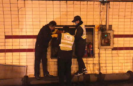 圖為檢查人員在檢查隧道內消防箱
