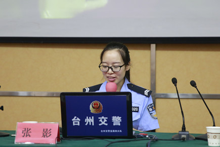 圖為臺州市交通警察局直屬四大隊張影警官授課現場