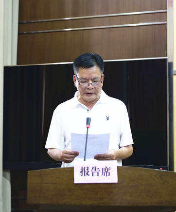 圖為公司副總經(jīng)理陳保衛(wèi)宣讀《關于轉讓臺州高速泰和房產(chǎn)公司股權的議案》