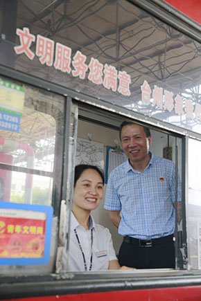 “今天車流量多嗎?你們是公司形象的代表,請把最優(yōu)質(zhì)的服務(wù)提供給他們?!痹谂_州收費(fèi)所一號崗?fù)だ铮瑥埥ㄆ揭贿呂繂柈?dāng)班收費(fèi)員,囑咐他們注意安全和休息,一邊鼓勵他們堅持做好文明服務(wù)。他還到黃土嶺隧道所、臨海南收費(fèi)所慰問當(dāng)班執(zhí)勤隊員和收費(fèi)員。此時,各所食堂管理房正處于改造階段,他仔細(xì)查看了各所食堂和工作場所,了解大家的飲食和工作環(huán)境。
