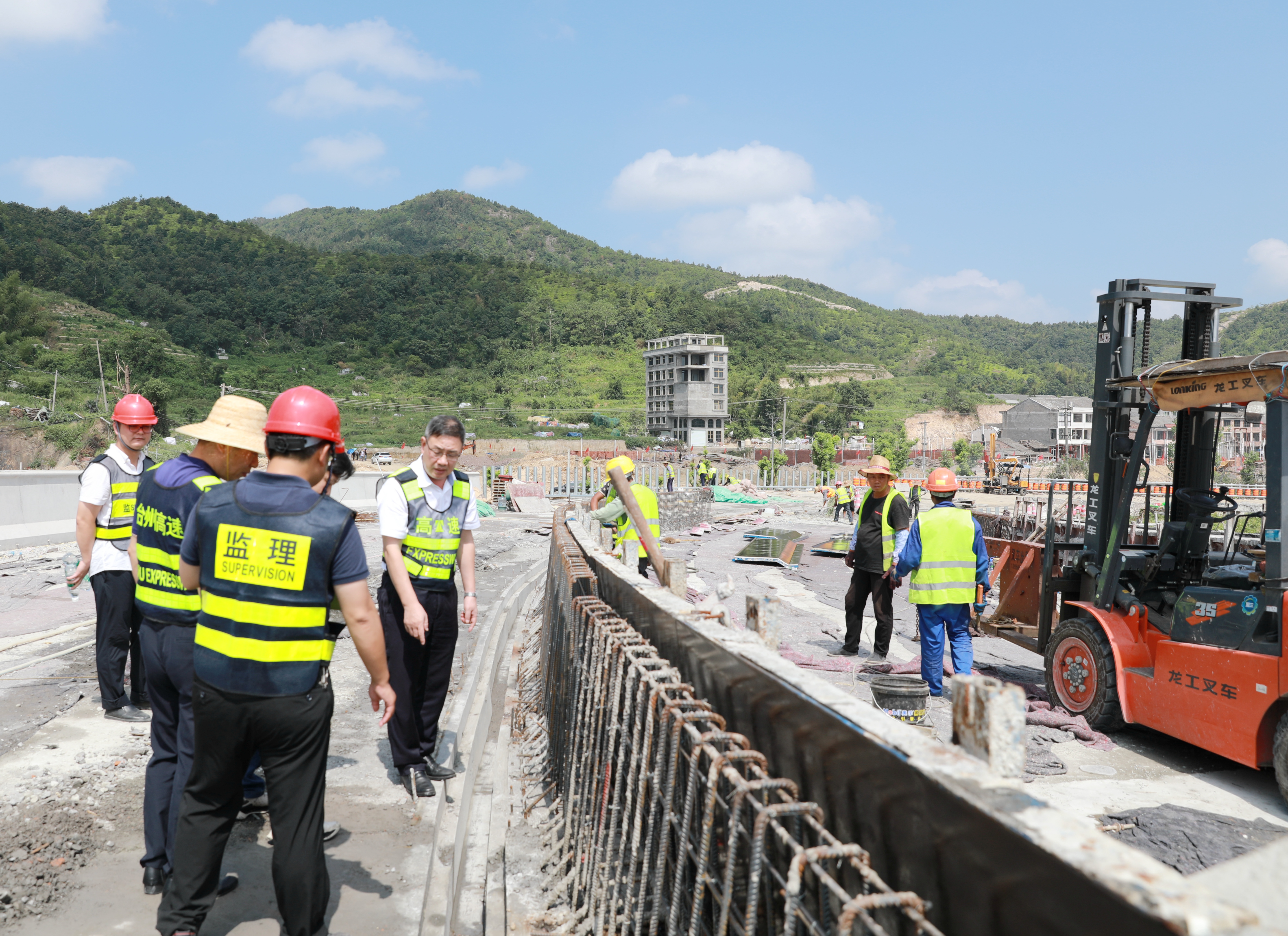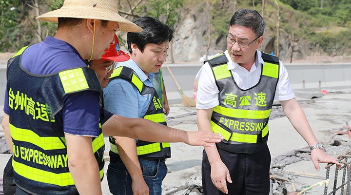 上午,臺(tái)州高速集團(tuán)黨委書記、董事長、總經(jīng)理陳文波,公司黨委委員、總工程師江輝,以及工程部相關(guān)人員一起來到公司所轄路段,檢查施工進(jìn)展情況。