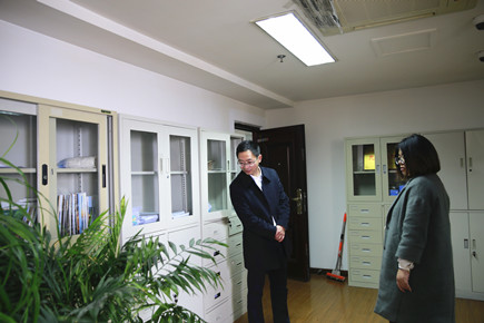 圖為公司副總經理董阿林在檢查工程部辦公室