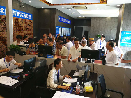 圖為路橋收購點(diǎn)股東辦理股權(quán)轉(zhuǎn)讓現(xiàn)場(chǎng)