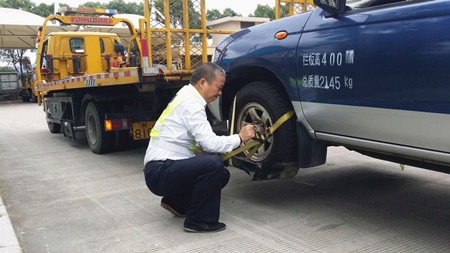 圖為工作人員參加清障車托舉輪胎拖曳比賽 早在節(jié)前,施救中心就未雨綢繆,全面檢查中心六輛清障車,主動聯(lián)系廠方并要求派專員上門服務。其中對清障車輛的液壓系統(tǒng)進行了檢查維護,添加了液壓油,更換了漏的液壓泵,修理了滲油的油缸和油管接頭,對啟動困難的清障車輛更換了電瓶和馬達,對水溫過高的發(fā)動機更換了電子風扇,并對水箱進行清洗,確保節(jié)日運行性能的良好,杜絕了一切安全隱患。 今年國慶、中秋雙節(jié)合并使得假期更長,并且黨的十九大也在10月份召開。為此,施救中心高度重視,不僅全面檢查清障車輛,而且召集全體人員廣泛聽取應急應對意見,強調要頂住壓力,克服困難,團結一心,打贏這一次艱苦的攻堅戰(zhàn)。中心要求管理人員加強駐勤值班,及時掌握路況信息。一線人員不請假,不調休,加班加點隨時待命,聽候指揮,同時采取就近用餐、提前布控等措施,為保暢道路做好萬全準備。