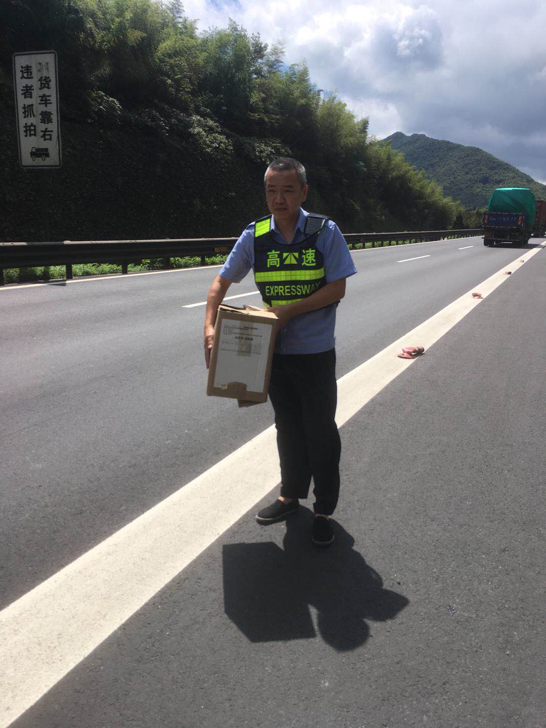 “咦,那邊路上有一個紙箱,快開過去看看?!?月24日上午10點左右,黃土嶺隧道所執勤隊進行日常巡邏時發現高速路上立有一個紙箱,為了不影響交通,執勤隊員立即將包裹挪離路面,排除安全隱患,避免影響車輛正常通行。 這個紙箱是一份快件,大約十來斤重,上面赫然貼著包裹的信息,由山東發往溫州樂清市的汽車配件。這樣的大包裹遺失,失主知道后肯定萬分著急!執勤隊員為了讓這滑落的包裹盡快找回主人,一遍遍撥打快件單上那字跡模糊的電話號碼,經多方詢問終于找到了該家物流公司負責人。