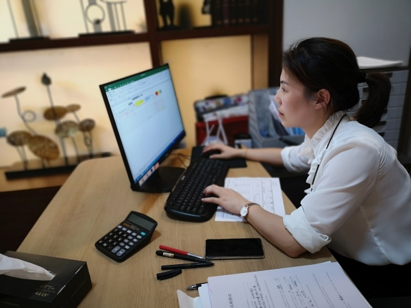 圖為包春燕加班登記各類資料 玖璽逸墅項目是高速房產入駐黃巖的首個項目,以品質打造好樓盤,以優質服務好客戶,首期開盤便贏得了社會各界人士的熱捧和好評。 鄭 攀