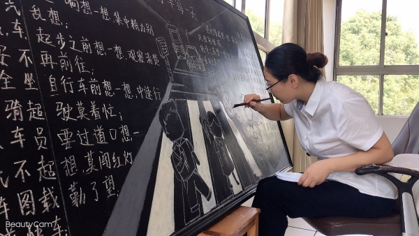 活動(dòng)前期,臨海南收費(fèi)所臨時(shí)組建五人板報(bào)小分隊(duì),充分利用空余時(shí)間搜集有關(guān)安全教育資料,對(duì)內(nèi)容、畫(huà)面進(jìn)行認(rèn)真整理、篩選。最終決定三個(gè)板塊,以提高安全教育為目的,以不同風(fēng)格主題來(lái)呈現(xiàn),從多方面、多角度設(shè)計(jì)與繪制,達(dá)到了更好的安全教育宣傳效果。 活動(dòng)開(kāi)展后,參與者們分配好各自的任務(wù)后,出黑板報(bào)的工作便熱火朝天地展開(kāi)了。大家利用自身的特長(zhǎng),通過(guò)粉筆字、繪畫(huà)等藝術(shù)形式,對(duì)黑板報(bào)進(jìn)行了精心的設(shè)計(jì),主題鮮明,內(nèi)容充實(shí),圖文并茂,趣味性強(qiáng),全方位、多角度地宣傳了《消防安全》、《食品安全》、《交通安全》三大主題。其中在交通安全宣傳方面,如何使交通安全內(nèi)容,更加直觀形象、簡(jiǎn)單易懂的、眾人易于接受呢?大家通過(guò)反復(fù)嘗試,決定打破傳統(tǒng)模式,避免枯燥說(shuō)教,把交通宣傳教育知識(shí)融入到兒歌中,通過(guò)朗朗上口的兒歌形式,傳達(dá)一些基本的交通規(guī)則,幫助大家養(yǎng)成自覺(jué)遵守交通規(guī)則的意識(shí),提高自我安全防護(hù)能力。最后經(jīng)過(guò)大家日夜趕工,黑板報(bào)的工作在大家的共同努力下順利完成。