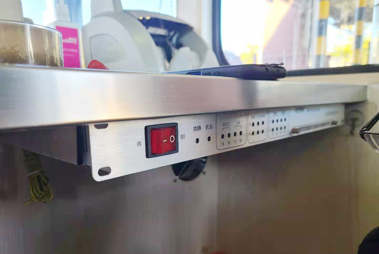 經過中心技術人員集思廣益和反復討論,他們決定利用不銹鋼鐵片作支架,用自攻螺絲將其固定在桌面下方,隨后將控制器移至支架上,最后再在控制器后部取個圓孔,將原先桌面上的電源線、數據線等通過孔洞連接到設備上。敲定方案后,大家著手定制購買相應材料和工具,不到3天時間,集團5個收費站共計39個天線控制器全部完成“搬家”。 “這樣的設計即隱蔽又美觀,我們也可以放心打掃桌面了,以前上面連杯水都不敢放,就怕不小心弄翻時損壞設備。”臺州收費所收費班長馬德偵對著“安家”后的天線控制器贊嘆道。 項寅曉