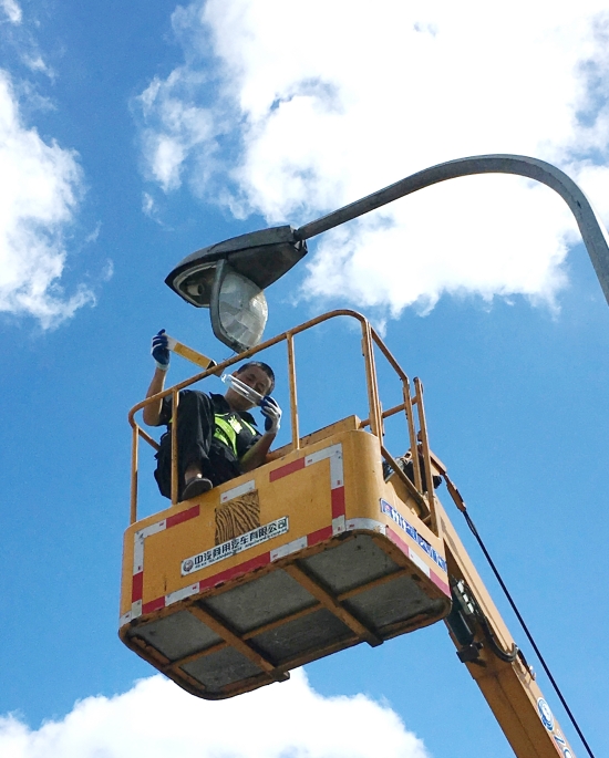 “我動(dòng)作快而且都已經(jīng)在上面了,換來換去又要浪費(fèi)不少時(shí)間,早點(diǎn)修好早點(diǎn)恢復(fù)通車?!碑?dāng)完成第一盞路燈,大家都勸他下來再換個(gè)人時(shí),被他婉拒了......