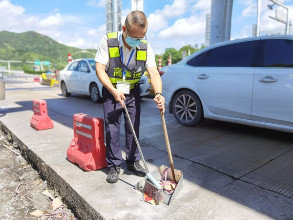 烈日灼燒著大地,高速兩邊的樹葉都被曬得打了卷,悶熱的空氣讓人喘不過氣來,在溫嶺西收費(fèi)站,不少司乘人員在過站時,隨手將食品的塑料袋、煙頭、塑料瓶等垃圾丟棄在收費(fèi)站出口處,班長陳軍見到隨時清掃路面,保持收費(fèi)區(qū)域衛(wèi)生干凈整潔。彎腰、清掃、起運(yùn),看似簡單的一組動作,陳軍每天要重復(fù)幾十次,衣服一天不知要被汗?jié)穸嗌俦椋?/span>但他堅持以良好的形象展示臺州高速的精神風(fēng)貌。他就是臺州高速上的最美堅守者。